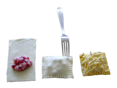 Fold the rectangles together and press on the edges with a fork (important)